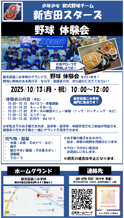 10月13日体験会を予定しています。